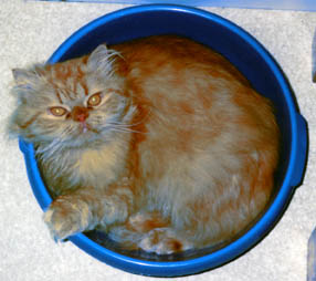 Aussi, après avoir tourné un moment dans la maison pour trouver un endroit où dormir. (Je me souviens, il ne faut pas que j’aille dans les placards, ni dans les lits, ni sur le canapé, ni dans la couche couche d’Uranie ni dans celle de Volga). Enfin, je trouve l’objet de mes désirs une bassine, une jolie bassine bleue, en plastique. Je saute dedans, je me mets en boule et dors comme un bienheureux même si au fond de celle-ci, il reste un peu d’eau - que ne ferait on pas pour les amis ! - .