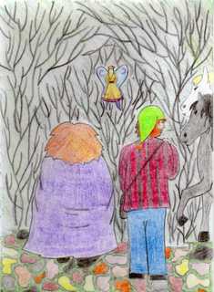 - Il faut se remettre en route ! - Maître ? - Hum… - Pourquoi être parti dans cette direction ? Pipenbois s’accorda un moment de réflexion. - Je n’y ai pas trop réfléchi. Je suis allé droit devant moi. Il me désigna le carrefour au milieu duquel nous nous tenions : - Et puis, de ce côté-ci, ajouta-t-il en désignant sa droite, cela conduit à la rivière que tu as traversée il y a quelques mois. Les villageois y pêchent leurs poissons quand les ondines dorment. Et par là, cela ne mène qu’à un seul endroit… - Chez Baba-Yaga, dit une petite voix étouffée. C’était ma fée-jonquille, tremblante. - Tout juste ! Alors, tu vois que je ne me suis pas posé la question.