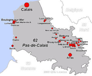 Le Pas-de-Calais est un département classé sous climat océanique. De par sa position, le Pas-de-Calais est soumis à différentes influences climatiques : le temps est dit "variable" mais la mer protège souvent de tout excès climatique. Le relief et la position du département par rapport aux grand flux différencient le climat d'un bout à l'autre de la région : l'influence atlantique en flux d'ouest entraîne souvent le passage de perturbations et des ciels de traine typiques de la région. l'influence des flux d'est peut provoquer des hivers froids sous un ciel bleu immaculé ou des étés ensoleillés. les flux de sud apportent en été un air asséché par le survol de la France et l'intérieur de la région peut alors approcher les 40°C, comme lors de l'été 20031. Les zones les plus arrosées sont les zones de reliefs, surtout si elles sont boisées. L'ouest est exposé aux vents marins dominant de sud-ouest : le Haut Pays d'Artois est par exemple la zone la plus arrosée du département, avec 1000 mm/an. Au centre du département, les collines de l'Artois reçoivent environ 800 mm/an. Ce cumul tombe à 600 mm/an sur le versant sud-est, protégé des vents dominants, avec une moyenne des températures maximales estivales légèrement supérieure à 23°C 2. On observe donc un contraste dans les précipitations, avec des zones de relief à l'ouest relativement arrosées alors que certaines régions de plaines sont assez sèches. Le climat est de type océanique, surtout au nord-ouest, les amplitudes thermiques sont modérées et les hivers sont doux avec un temps instable. Les jours de gelée et de neige sont peu nombreux. À Boulogne-sur-mer, il y a en moyenne 5,2 jours avec une température maximale moyenne inférieure à 0° et la température la plus basse enregistrée depuis 1947 est de -13,6°C. La nébulosité, qui contrairement à l’opinion générale n’est pas si fréquente, est limitée par des vents toujours actifs 3. Le sud-est du département connait un climat un peu plus continentalisé moins venté avec des écarts de température plus marqués. La température moyenne en hiver s'élève de 2°C à 4°C du sud-est vers le nord-ouest, et en été va de 17°C à 18°C en sens inverse. Lors de canicules exceptionnelles, les températures peuvent atteindre les 35°C, et lors d'hivers très rigoureux, les records de froids vont de -13°C à -18°C. Dans le Pas-de-Calais, le nombre de jours avec pluie est de 159 jours par an soit 44% de l'année. À Boulogne-sur-mer, le nombre de jour par an avec pluie importante est de 44.