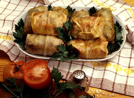 Golubtsy ou Goulubtsy Ingrédients, pour 4 personnes : Un gros Choux blanc, pas frisé. Farce : Viande hachée de bœuf ou vache ou macreuse 800 g , 2 œufs, 1 verre de riz, 2 grosses tomates ou crème smetana [pour 6/8 personnes].